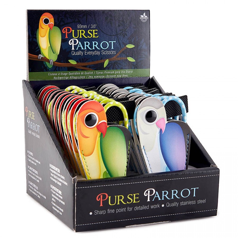 Ножницы для вышивания в чехольчике, 93 мм, набор 20 шт в картонном цветном дисплее. Острая и тонкая заточка лезвий для детальной работы. Лезвия из нержавеющей стали идеально подходят для резки нитей, мулине и т.д. Храните вместе с чехлом для шитья из искусственной кожи в виде прекрасного попугая. Закрепите ножницы защелкой-кнопкой “попугайный глаз”. Идеальный компаньон для сумочки каждой дамы. Штрих-код, отпечатанный на чехле из полиуретана (можно обрезать после покупки). Цвета: синий в белый горошек, лаймовый в белый горошек. Размеры дисплея (закрытый): W12.5 x D13.5 x H11 см. Размеры дисплея (сконструированный): W12.5 x D13.5 x H17 см. Вес брутто дисплея: 575 г.