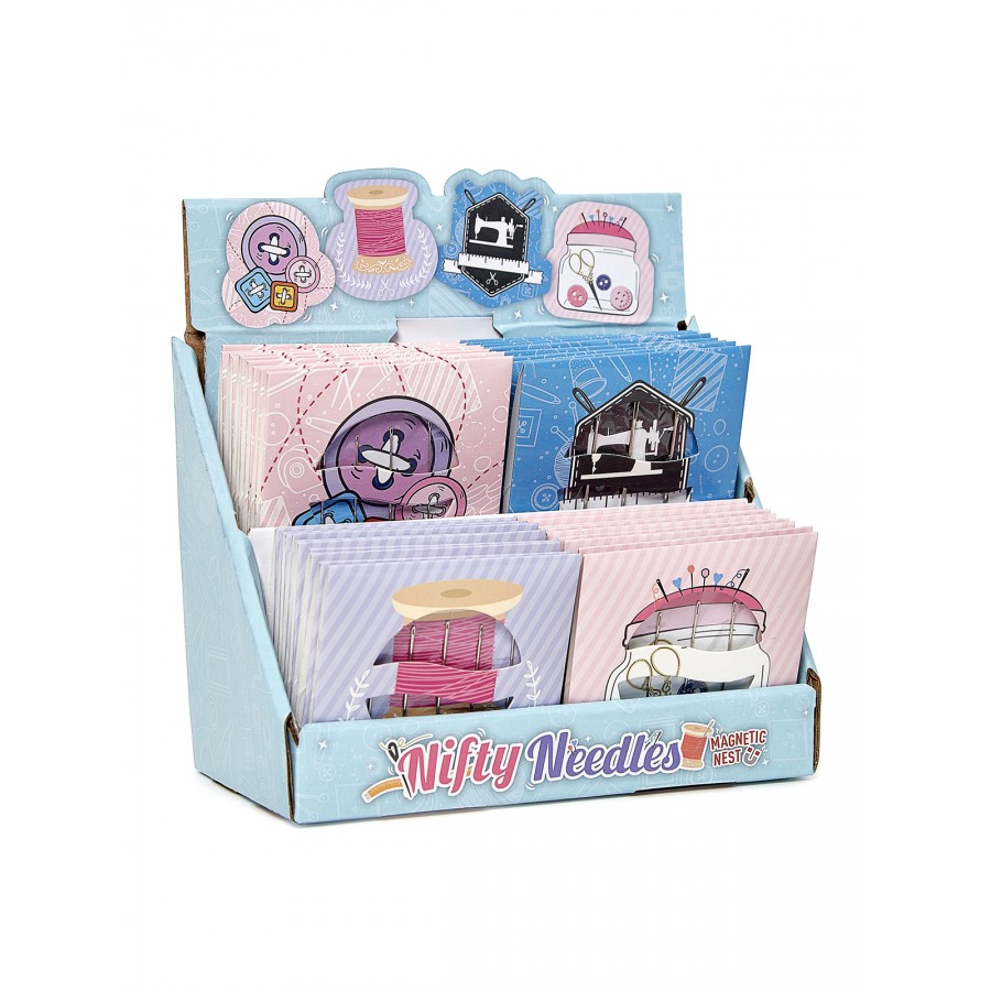 Игольница магнитная "Nifty Needles" с иглами для разных техник, 40 шт, в прикассовом стенде. Доступны 4 различных типа игл 5 разных размеров. Размер игл для вышивки: 5, 6, 7, 8, 9. Размер острых игл: 6, 7, 8, 9, 10. Размеры игл для квилтинга/промежуточные размеры: 5, 6, 7, 8, 9. Размер игл для гобеленовой вышивки: 18, 20, 22, 24, 26. Легкий и притягивается к большинству металлических поверхностей. Многоразовая упаковка. Индивидуальный штрих - код. Размеры магнитного листа: 7 x 7 см. Размеры изделия: 16 x 8,5 x 12,5 см. Общий вес изделия: 800 г.