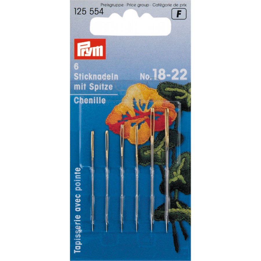Иглы ручные д/вышивки с острием, №18-22, 6шт в блистере, Прим