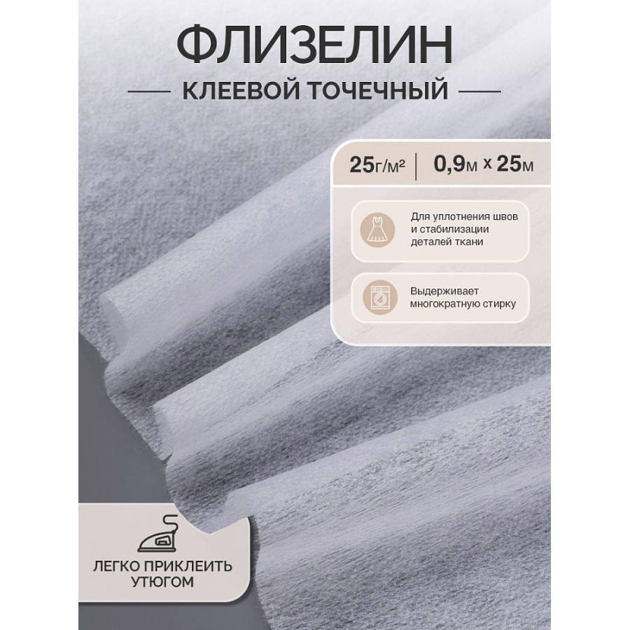 Флизелин IdealTex клей PA точечный 25г/м² белый 6025W 90см рул.25м