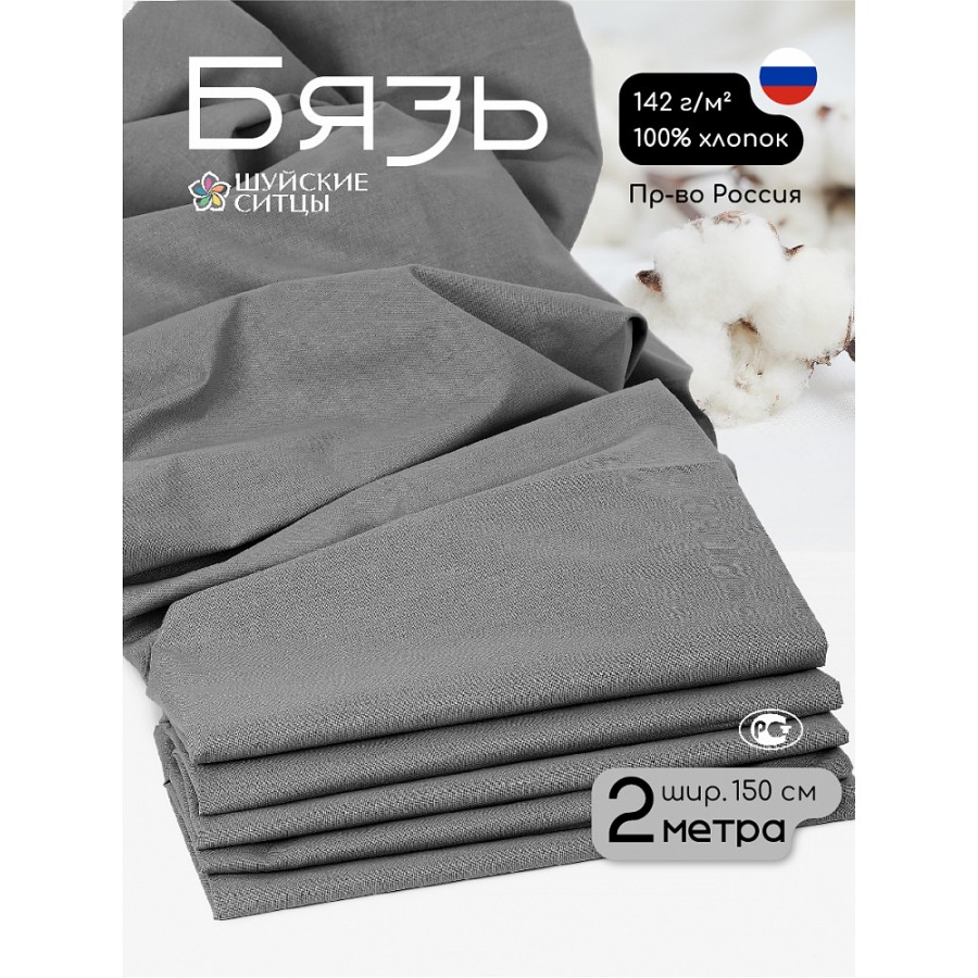 Ткань Бязь 262 гладкокрашенная ГОСТ светлый графит 2м
