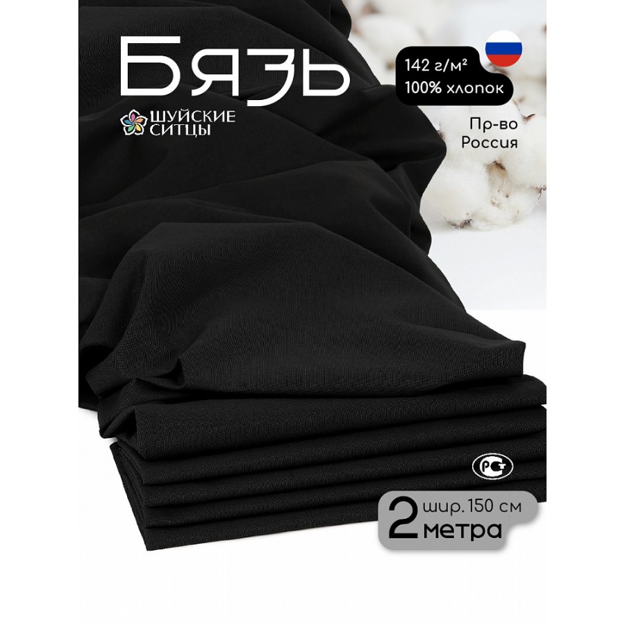 Ткань Бязь 262 гладкокрашенная ГОСТ черный 2м