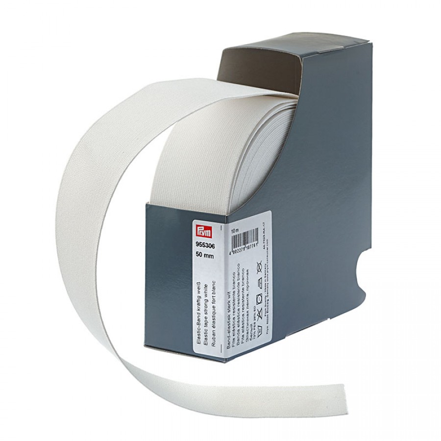 Эластичная лента прочная, ширина 50мм (72% полиэстер, 28% эластодин), белый, Prym, 955306
