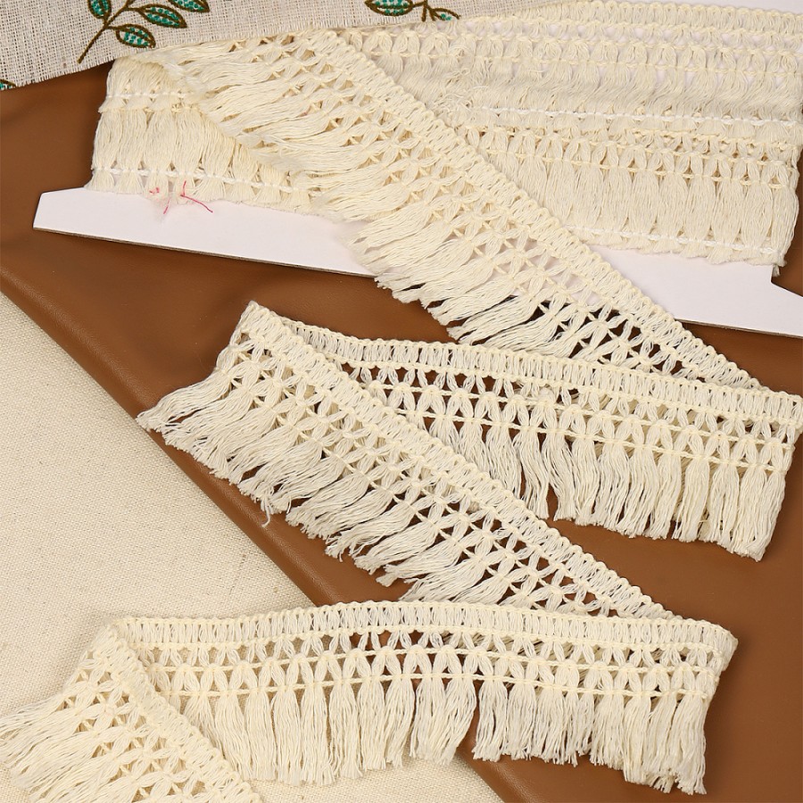 Бахрома хлопковая TBY.2455 шир.35мм цв.натуральный, уп.3м