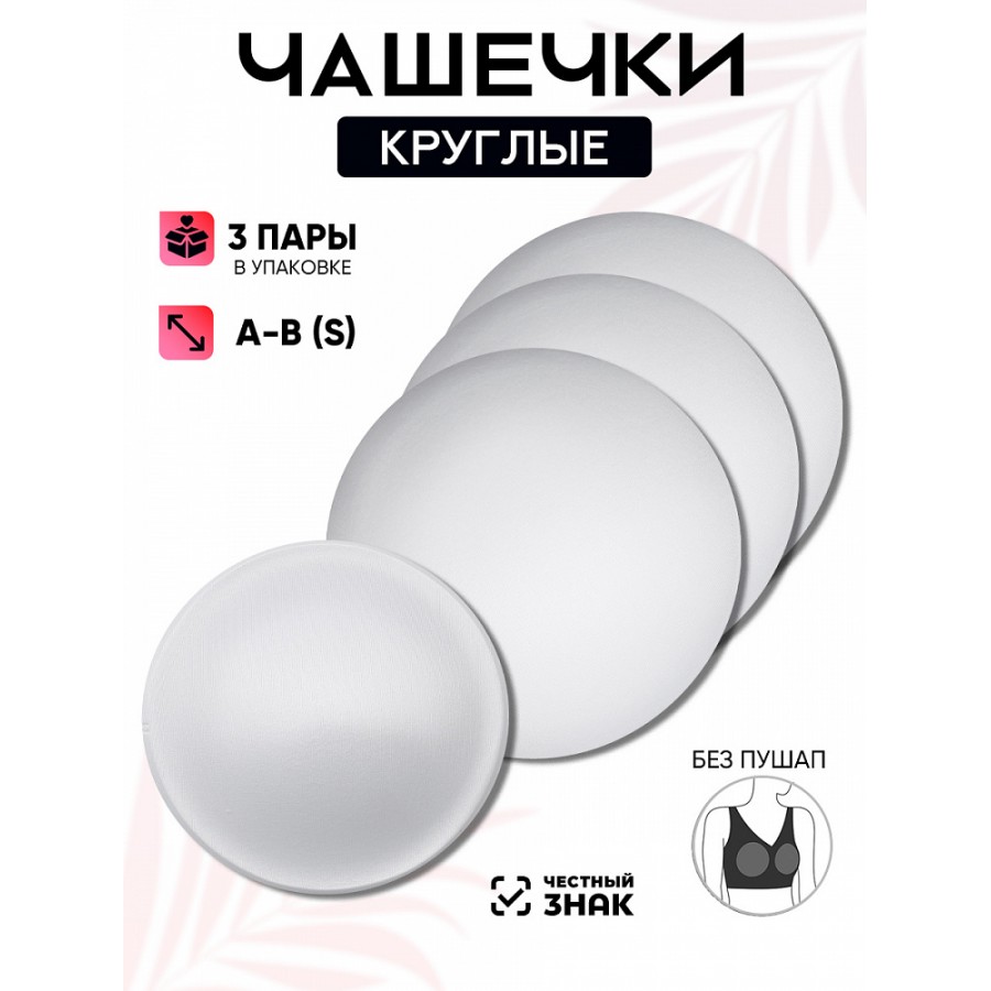 Набор из 3-х пар круглых чашечек-вкладышей без пуш-ап Комфорт, белые, TBY 04 A-B