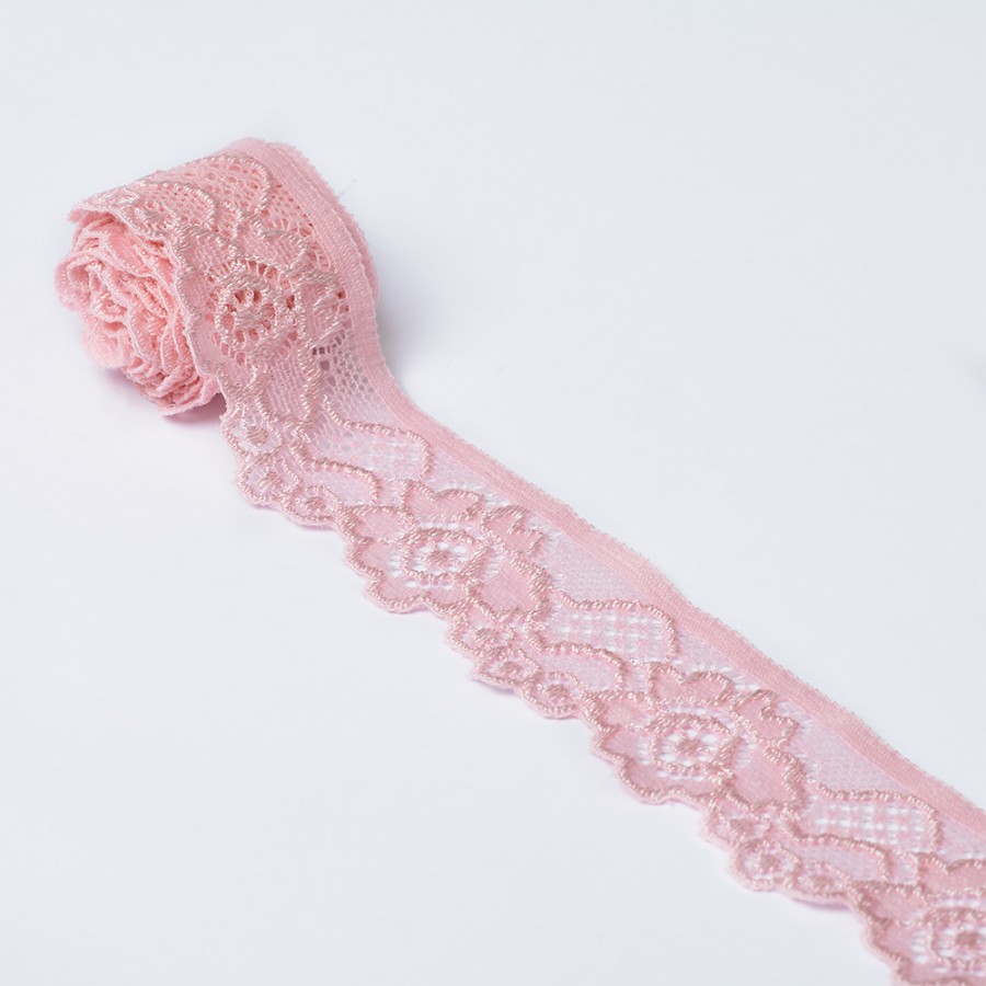 Кружево-стрейч KRUZHEVO TBY.L839 шир.35мм цв.16 неж.розовый уп.50м