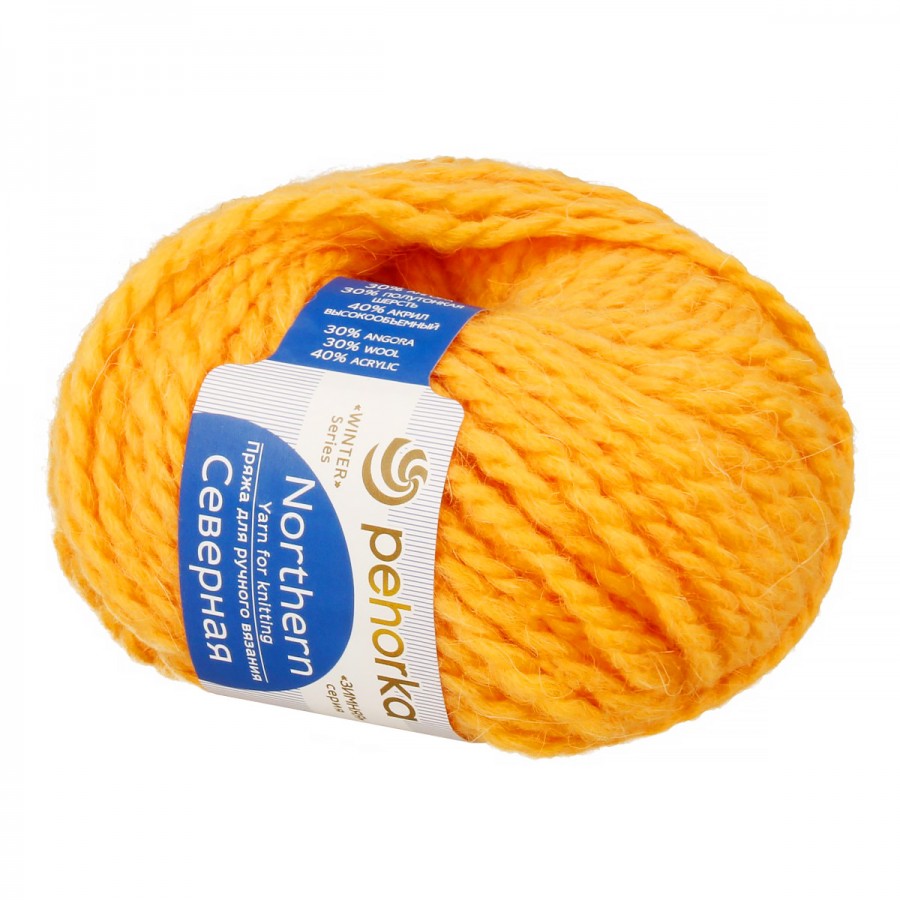 Пряжа "Северная". ТМ Пехорский текстиль. Для вязания предметов одежды и аксессуаров. Сезон: Демисезон / Зима. Холода приходят всегда неожиданно. Зимой хочется закутаться в пушистое, мягкое, ласковое и это спасительное чудо мы предлагаем в пряже «Северная». Шикарный плед, роскошный палантин, джемпер, шапочки, варежки, носки - согреют Вас в зимнюю стужу. Из-за того, что пряжа - ОЧЕНЬ гигроскопичный товар, она легко набирает и легко отдаёт влагу. Указанный на мотке вес - это так называемый "кондиционный" вес. Нормативная влажность пряжи - 18,25\%, а реальная обычно бывает меньше - 14-15\%. Поэтому, при взвешивании пряжи в "обычных" комнатных условиях, данные по весу могут отличаться от указанных на мотке. Контрольное взвешивание, при определенной влажности и температуре, должно проводиться только в спец. лабораториях. Претензии по весу принимаются только при наличии официального заключения лабораторий, либо при очевидной разнице - более 30\%. Тип пряжи: Классическая Цветовая палитра: однотонные цвета Толщина нити: толстая Длина нити: 50 м Вес: 50 г Состав: 40\% акрил, 30\% ангора, 30\% полутонкая шерсть Рекомендуемый диаметр спиц/крючка для пряжи - 6.0-7.0 мм Примечание: цвет товара может отличаться от цвета фото