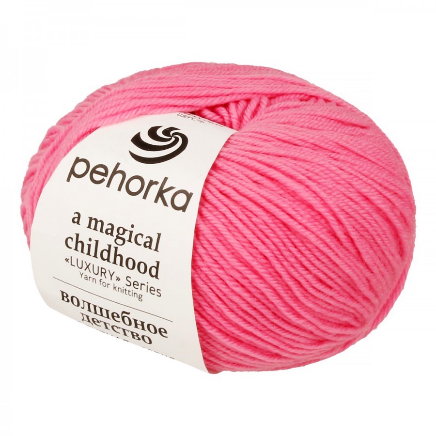 Пряжа Пехорская ПТ Волшебное детство 100\% мериносовая шерсть 5 шт. х 50 г 220 м N011 яр.розовый