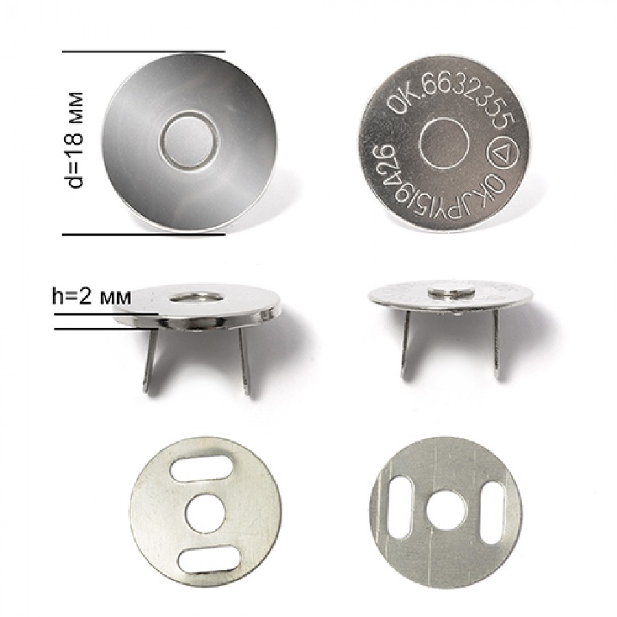 Кнопка магнитная на усиках ТВ.6614 h2мм Ø18мм цв. никель уп. 10шт