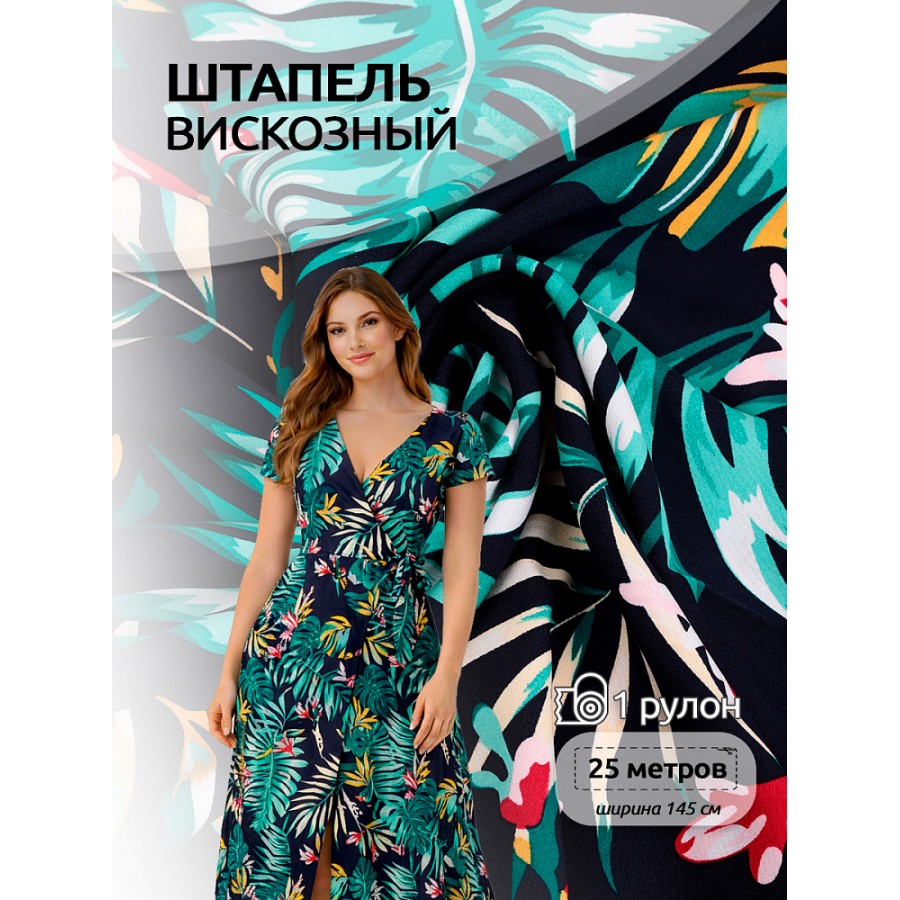 Ткань штапель цв.D5 синий 105 г кв.м 25 м