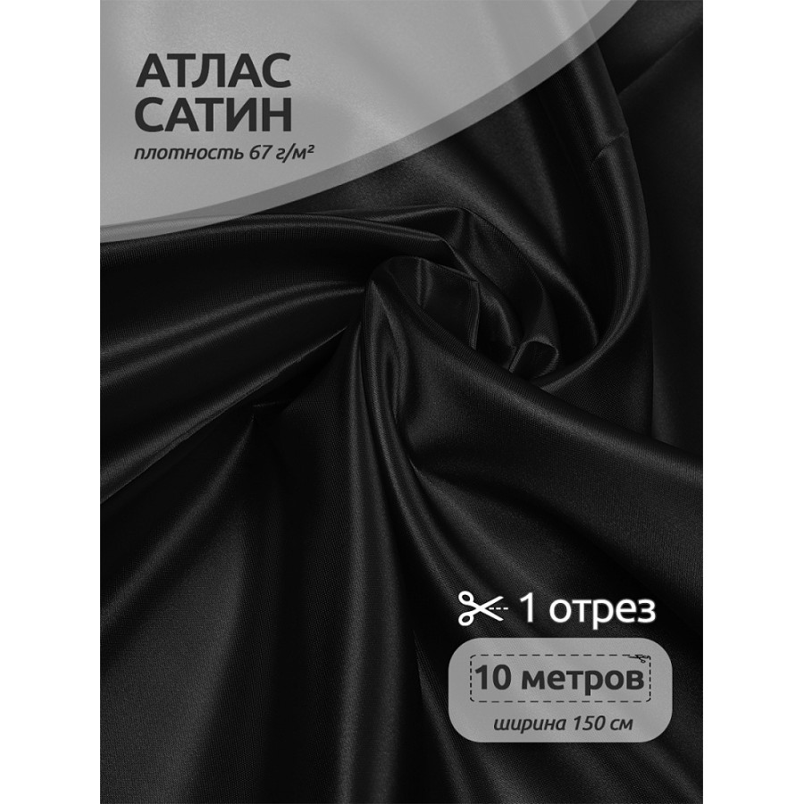 Ткань Атлас-сатин 67 г/м² 100% полиэстер шир.150 см AS.18 цв.чёрный рул.10м