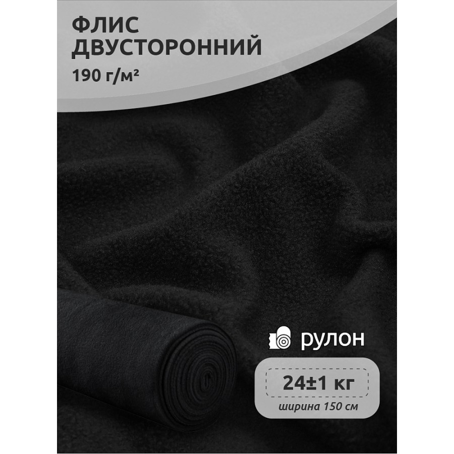Ткань флис 2-х ст. 190 г/м² F322 черный 24кг