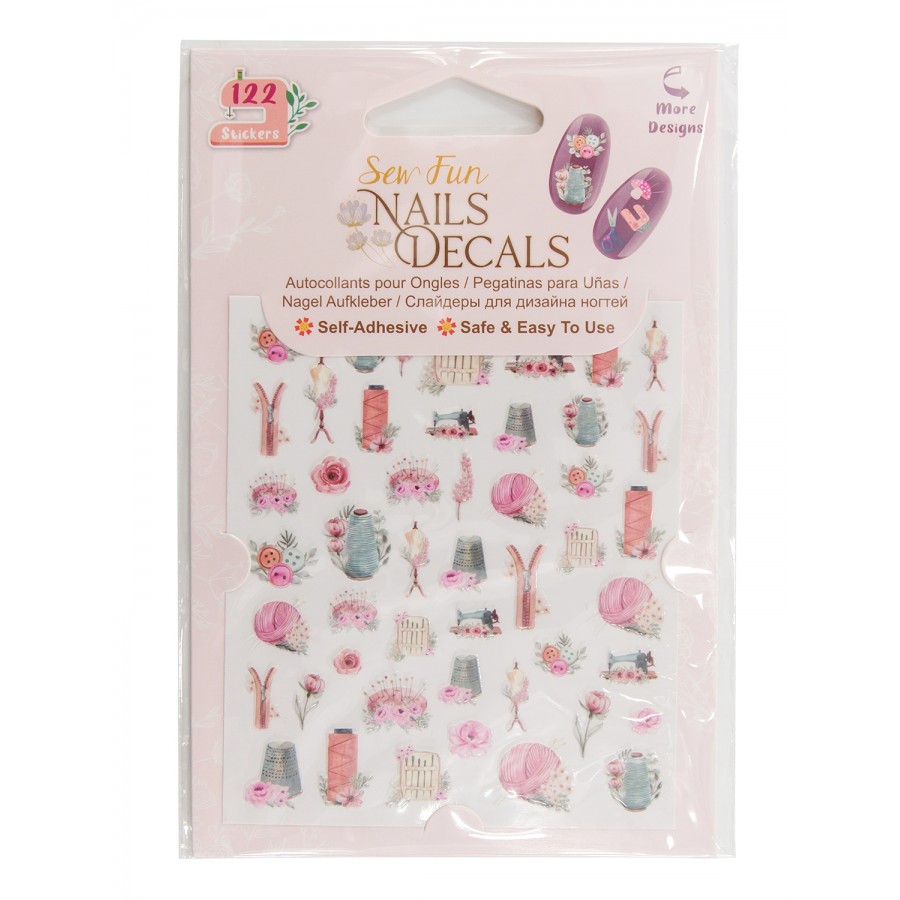 Слайдеры для дизайна ногтей. Самоклеющиеся. Безопасны и просты в использовании. Соответствует стандартам безопасности EN-71, ASTM, FDA. Каждая упаковка содержит 122 наклейки в швейных тематических дизайнах. На упаковке указана инструкция по использованию.Размеры изделия: W9,5 x D0,2 x H14 см. Размеры дисплея: W10 x D20 x H14 см. Вес брутто товара: 340 г.