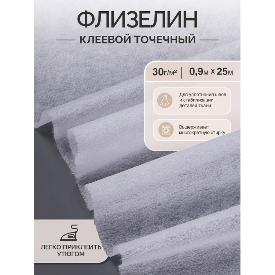 Флизелин IdealTex клей PA точечный 30г/м² белый 6030W 90см рул.25м