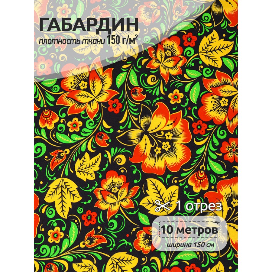 Ткань Габардин 150 г/м² 100% полиэстер шир.150 см 4000.169 цв.черный уп.10м
