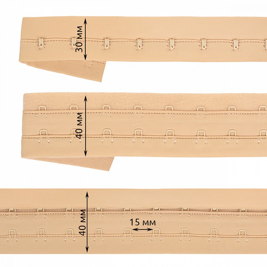 Крючки на ленте 2 ряда на мягкой основе шир.40мм TBY-82650 цв.бежевый уп.1м