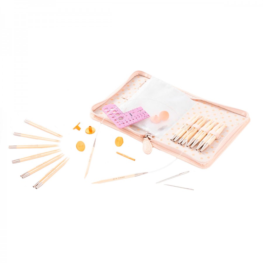 Набор съемных спиц "CarryC" (в наборе: органайзер, спицы съемные (3,5мм, 3,75мм, 4мм, 4,5мм, 5мм, 5,5мм, 6мм, 6,5мм, 7мм, 8мм, 9мм), тросик (50см, 60см, 80см), заглушки - 6шт, адаптер для тросика 1шт, иглы в ассортименте 2шт, линейка для измерения размера спиц с резаком для нити), бамбук/металл/пластик, 11 видов спиц в наборе