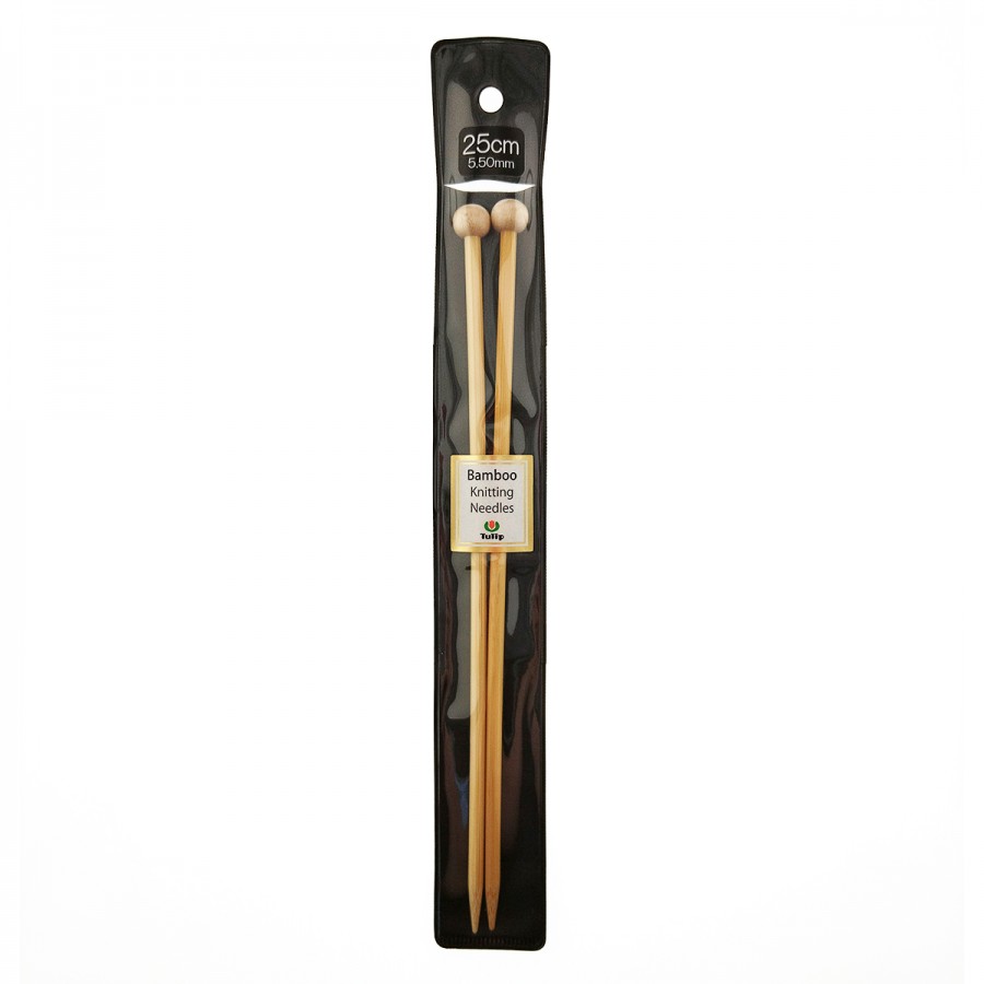 Спицы прямые Bamboo 5,5мм/25см, бамбук, натуральный, 2шт в упаковке, Tulip, KNS100550