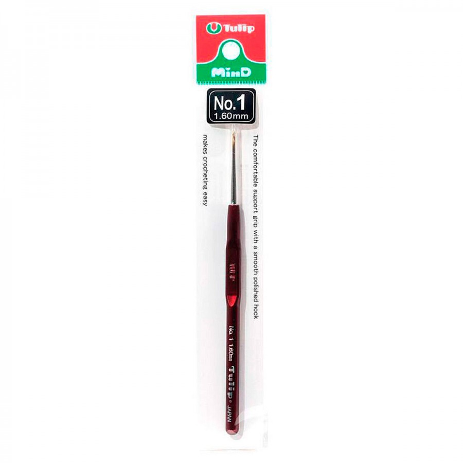 Крючок для вязания с ручкой MinD 1,6мм, сталь/пластик, золотистый/темно-красный, Tulip, TA-1042e