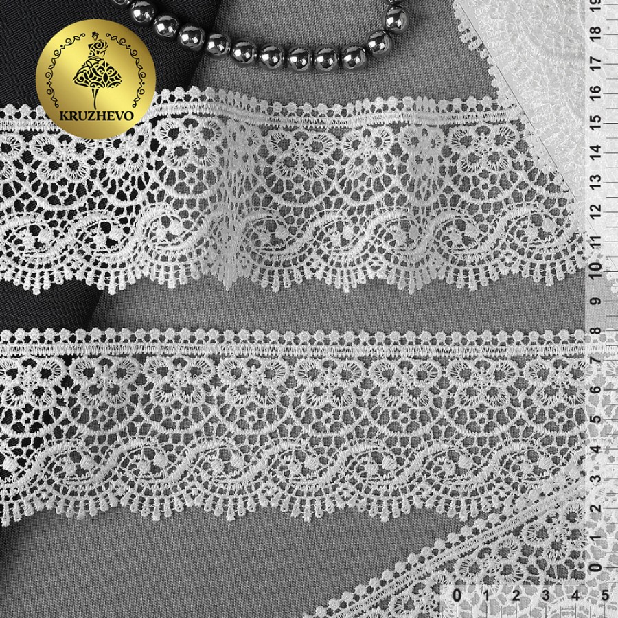Кружево гипюр KRUZHEVO TBY 8GB014 шир.65мм цв.01 белый уп.13,71м