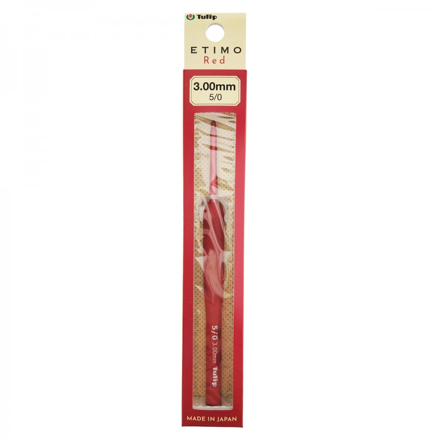 Крючок для вязания с ручкой ETIMO Red 3мм, алюминий/пластик, красный, Tulip, TED-050e
