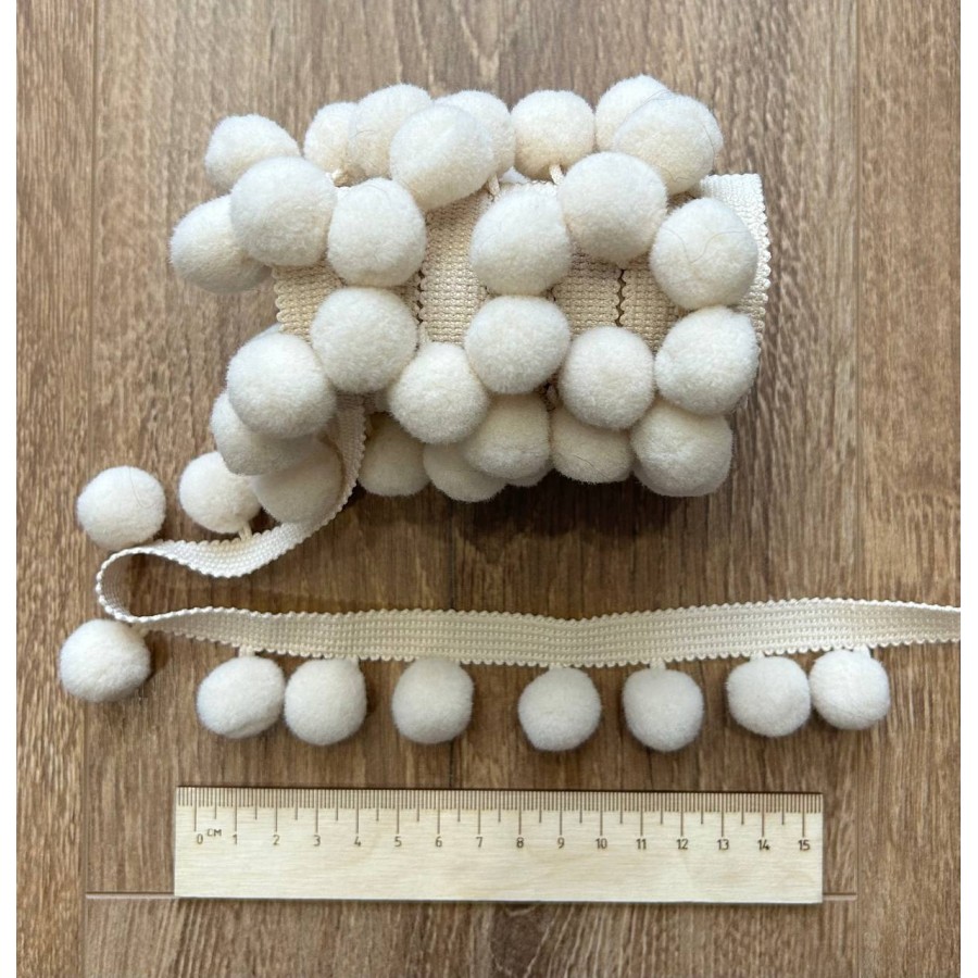 Тесьма с помпонами, D 20 мм, цв. св.-бежевый 2 метра