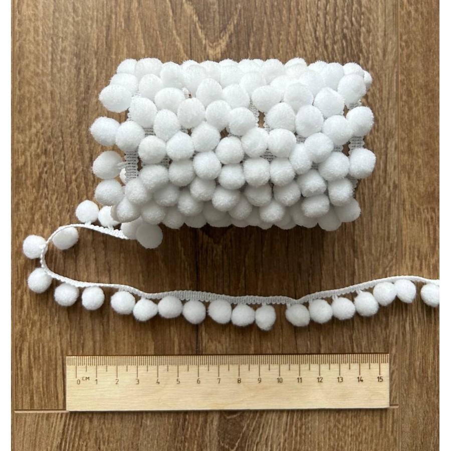 Тесьма с помпонами, D 10 мм, цв. белый 2 метра