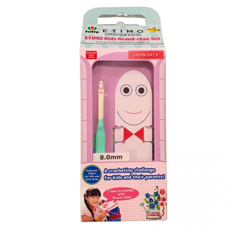 Набор для вязания "ETIMO Grand-chan" (состав: крючок для вязания "ETIMO Grand-chan" 8мм - 1шт, органайзер - 1шт, пряжа 20м, набор игл ручных для пряжи (длина 70мм, 80мм, 94мм), инструкция), пластик