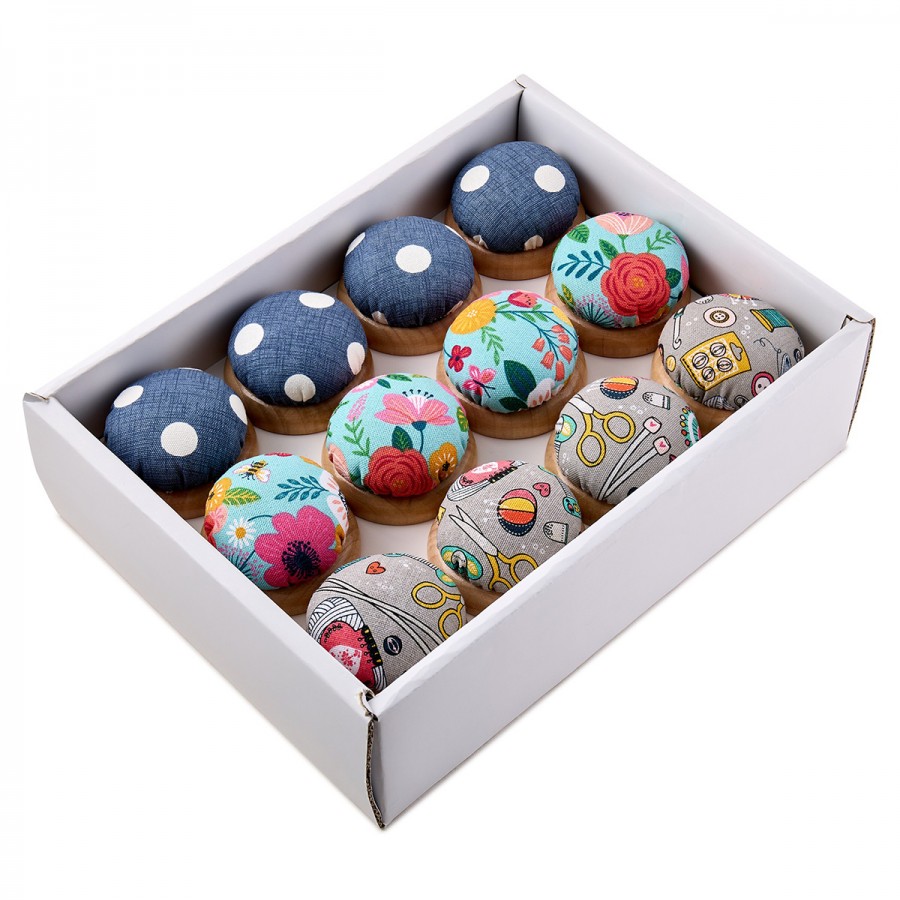 Игольница-подушечка 6 см. на деревянной основе, 3 цвета, 24 шт. в картонном прикассовом стенде 6 см HEMLINE PINC2