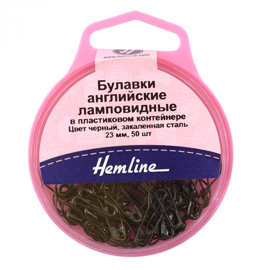 Булавки английские ламповидные в пластиковом контейнере 23 мм чёрный HEMLINE 416.00.BK