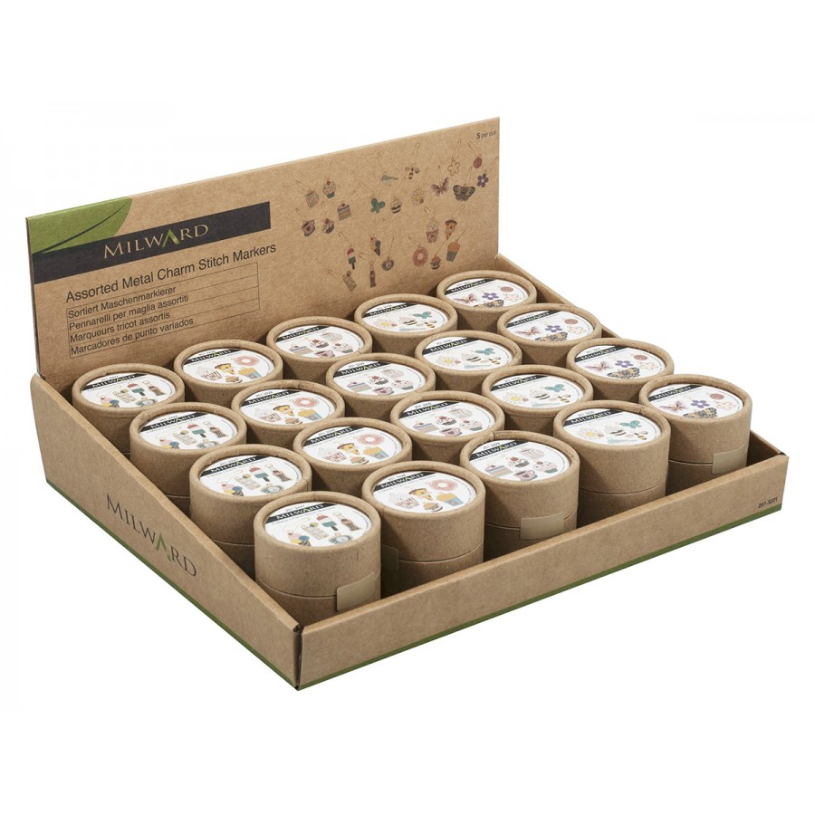 Коллекция красивых металлических эмалевых маркеров на булавках для вязания. Прочные и универсальные булавки-маркеры позволяют легко прикреплять маркеры к спицам или крючку или к стежкам. Они лёгкие, поэтому не будут растягивать ваши швы. На каждом дисплее представлены 4 уникальные коллекции. В каждом наборе есть 5 металлических маркеров для вышивки с эмалевым покрытием и забавными коллекциями, а также 5 уникальных тем, в том числе «Лето», «Закуски», «Время чая», «Счастливая пчела» и «Сад бабочек». Материал содержимого: чугун, сталь. Размеры дисплея (в закрытом состоянии): Ш26,5 x Д21,5 x В6 см. Размеры дисплея (в собранном виде): Ш26,5 x Д21,5 x В33 см. Вес: 650 г.