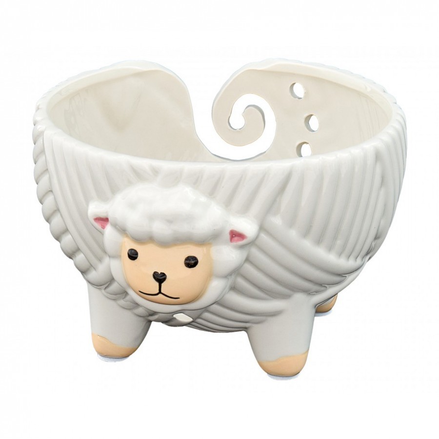 Новый дизайн клубочницы "Овечка". Достаточно глубокая, чтобы вместить несколько мотков пряжи (внутренние размеры: диаметр 16 см, высота 10 см). Изготовлена из качественной керамики, что обеспечивает идеальный вес для предотвращения смещения по сравнению с деревянными клубочницами для пряжи. Керамический материал имеет очень гладкую поверхность, на которой нет заусенцев, за которые может зацепиться пряжа. Отверстия для пряжи спереди и сзади достаточно большие, чтобы в них можно было продеть несколько нитей пряжи и избежать запутывания.. Размеры клубочницы для пряжи: диаметр 18 см, высота 12 см.