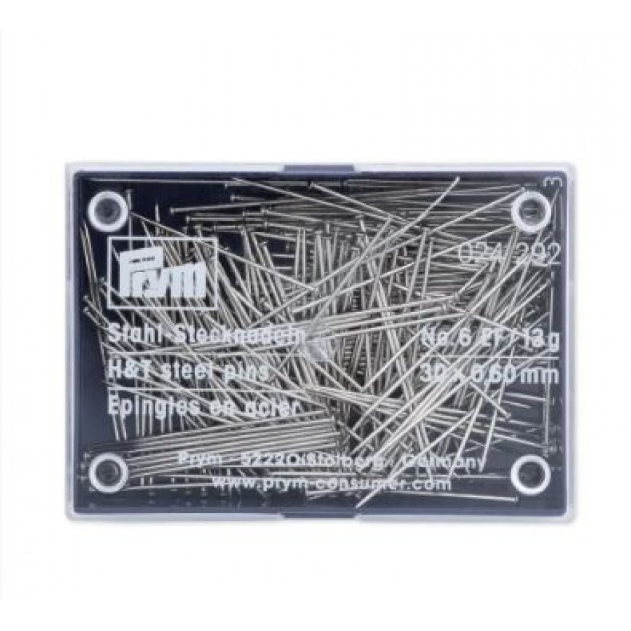 Булавки для шитья 30*0,60мм, сталь, серебристый, 13г в упаковке (пластмассовая банка), Prym, 024292