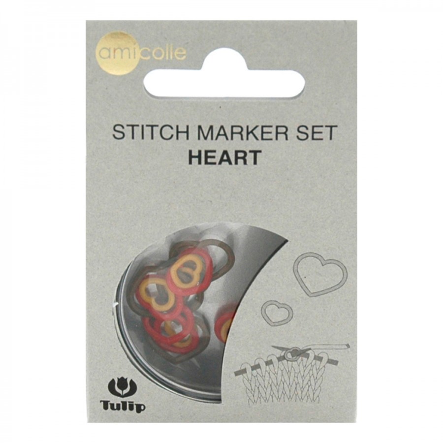 Набор маркеров для вязания "amicolle" (в наборе: коробочка круглая, маркеры "сердце" (желтый 2*3мм - 5ш, красный 3,25*4,5мм - 5шт, коричневый 5*6,5мм - 5шт), пластик